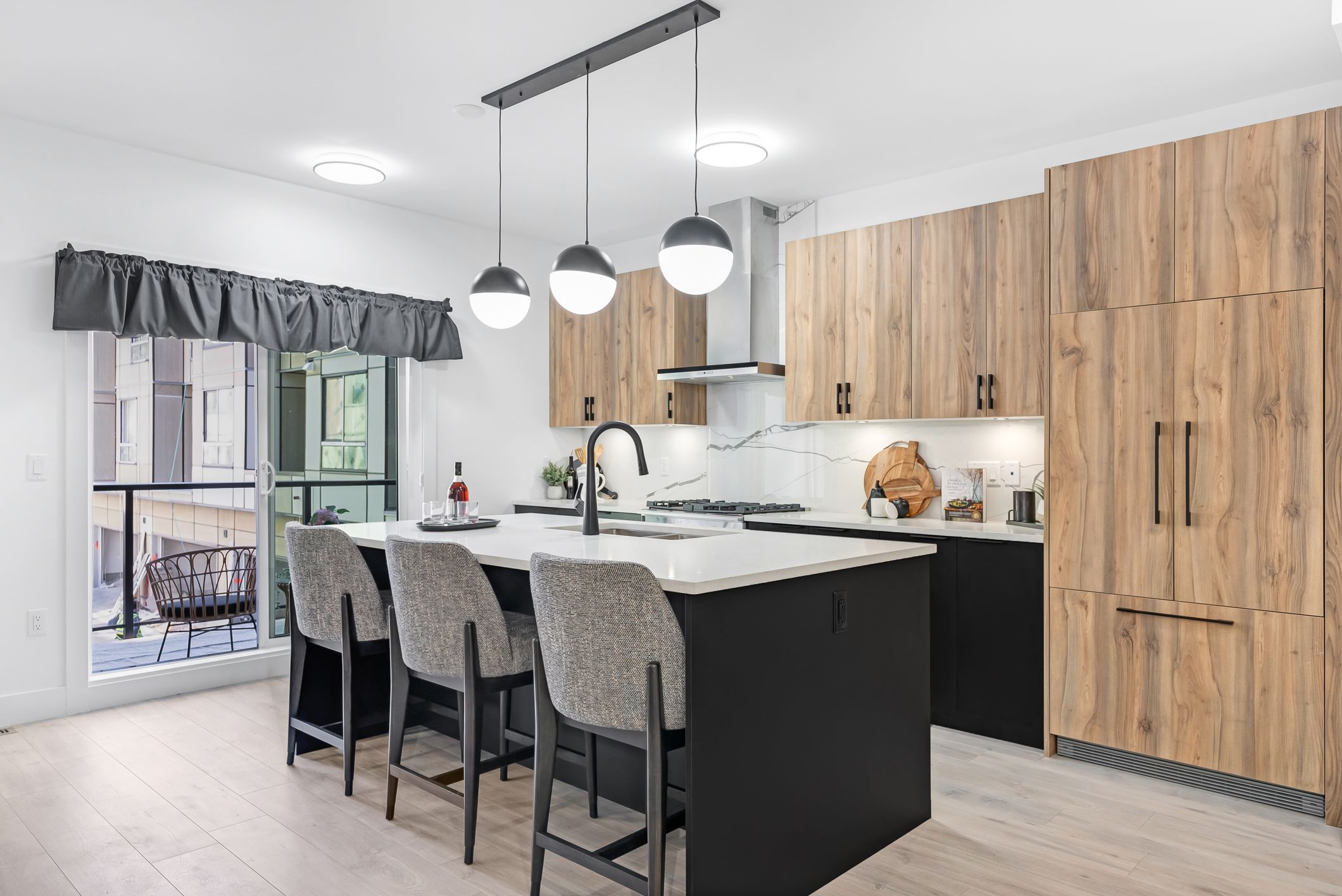 Certain homes come with spacious roof-top patios, with built-in outdoor BBQ kitchens that enable you to entertain or enjoy long summer nights on the rooftops (as an upgrade). Limited homes with main floor patios enclosed by massive green space. All homes include R.I., alarm, vac and EV. Enjoy luxurious homes at the center of a grounded neighborhood.